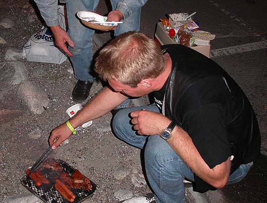 tog fram grillen och bjöd på mat.