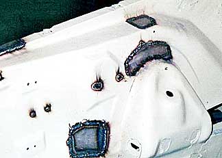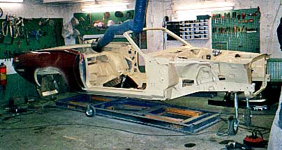 Efter blästringen så Epoxylackades alla blästrade ytor och nya spår från tidigare renovering kom fram