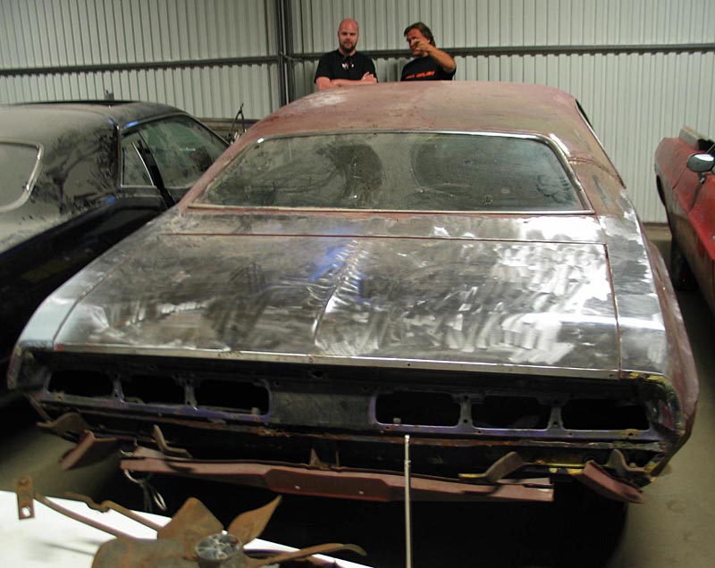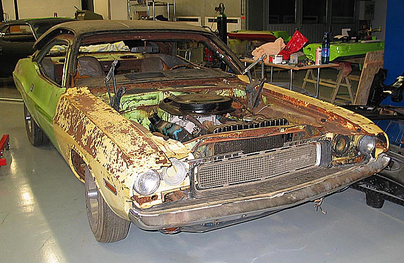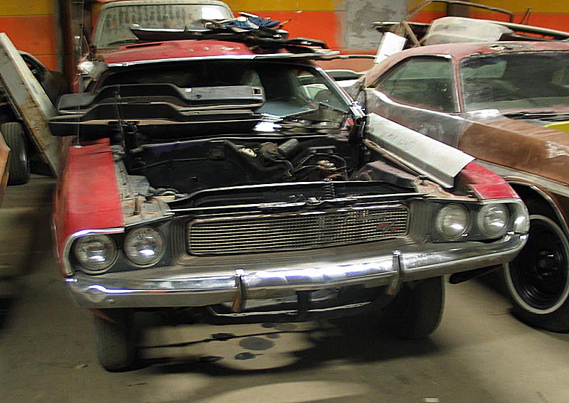så den är lite angripen av rost.![]() Men som tur var fick Perre ett extra tak med till bilen. ![]() Huven är lite angripen av rost den med. ![]() Oj en V kodad Challe till! ![]() och en till! ![]() ![]() ![]() ![]() Den Libanesiska Challenger som var i Orsa förra året kommer förmodligen bli försedd med HEMI. ![]() En 383 RT cab. ![]() Den här bakdelen fixk Perre med på köpet av RT caben. ![]() Och bakdelar kan man inte få för många av. Fler bra att ha