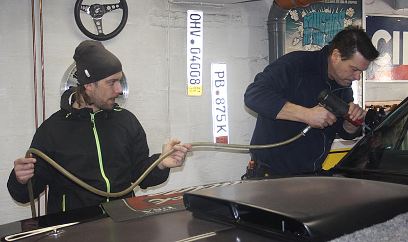 ![]() Glaslarson från Jakan rykte ut till Mats hjälp med vindrutan. ![]() Den nya finska vindrutan befrias från skyddsplasten. ![]() Duktiga killar med riktiga grejor ![]() Kladd och klet så det blir tätt. ![]() Dom nypolerade listerna monteras. ![]() ![]() Så där ja, bara lite puts kvar. ![]() Snyggt och klart! ![]() Torkarmotorn och hur var det nu den skulle kopplas in, Nysse fick klia sej i huvudet ett tag men i orginal manualen från 1969 stod det klart och tydligt. ![]() Nya torkarblad ![]() så där ja, då var rutan helt klar. |